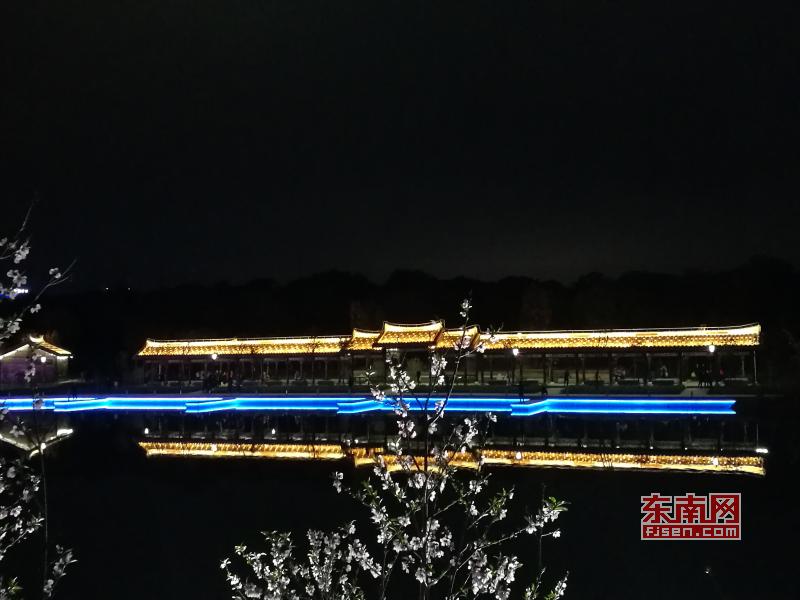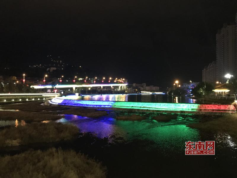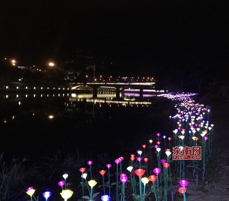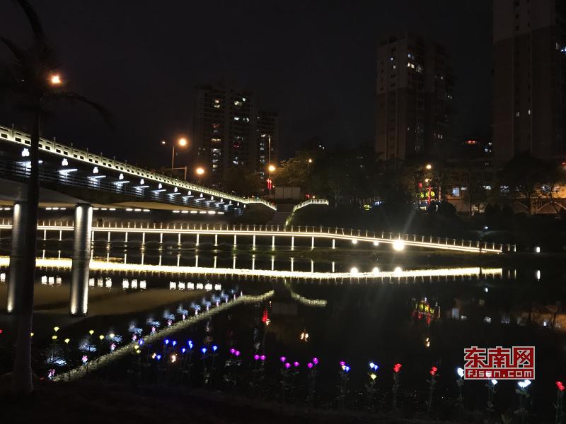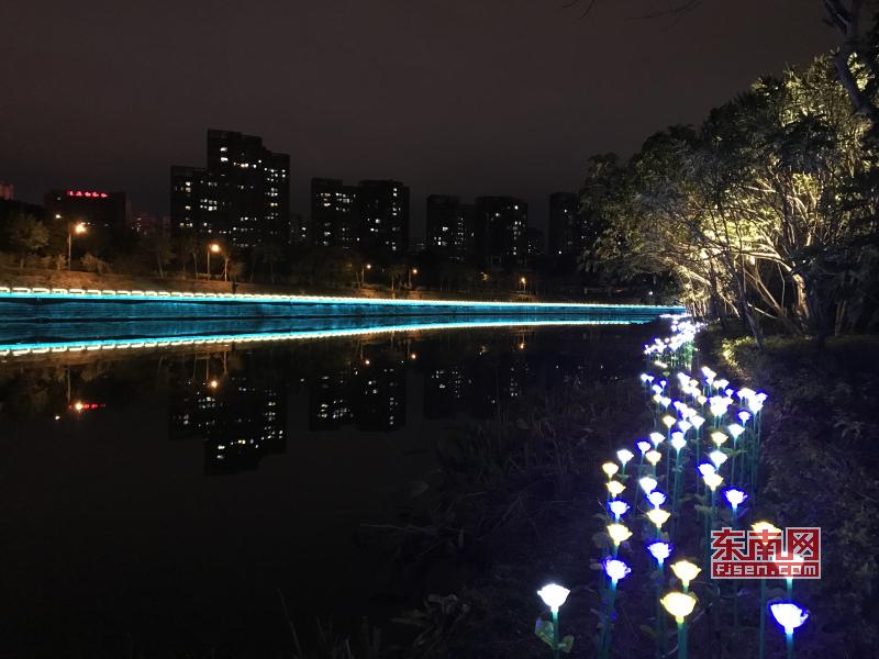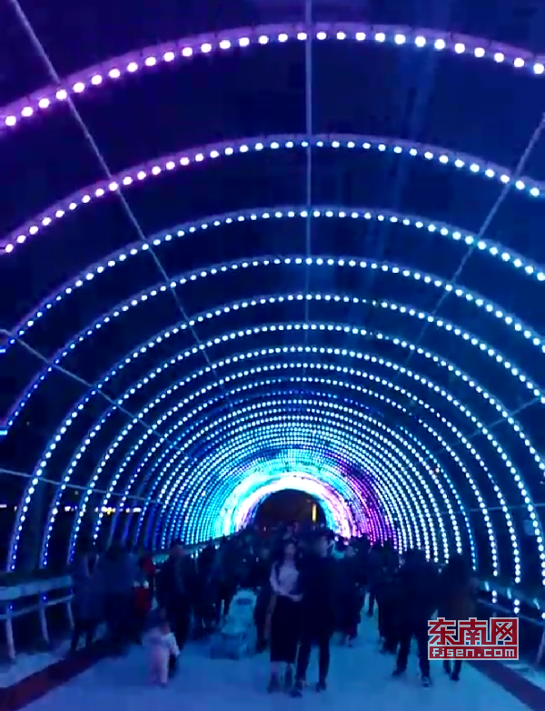 璀璨絢麗燈光扮靚莆田夜景 東南網(wǎng)莆田2月22日訊(本網(wǎng)記者 王龍風(fēng))火樹銀花,燈水交融,流光溢彩,夜色輝煌。春節(jié)期間正式亮燈的莆田泗華溪、綬溪公園華麗夜景,成為許多市民夜間游玩不可錯過的絕佳去處,每天都有許多市民沿著泗華古橋—星光隧道—新延壽橋底—過溪橋—延壽古橋,這一“夜游畫廊”,一睹兩溪公園璀璨夜景的風(fēng)采。 正月初六(2月21日),是春節(jié)長假的最后一個夜晚,東南網(wǎng)記者來到泗華溪、綬溪公園看到,處處色彩斑斕,一片燈火輝煌景象。走進(jìn)公園內(nèi),一路上游人如織,來來往往好不熱鬧。色彩變換炫動的星光隧道,更是吸引了許多市民前來穿梭體驗(yàn),許多小孩興奮地追逐著地面上游動的“魚兒”。