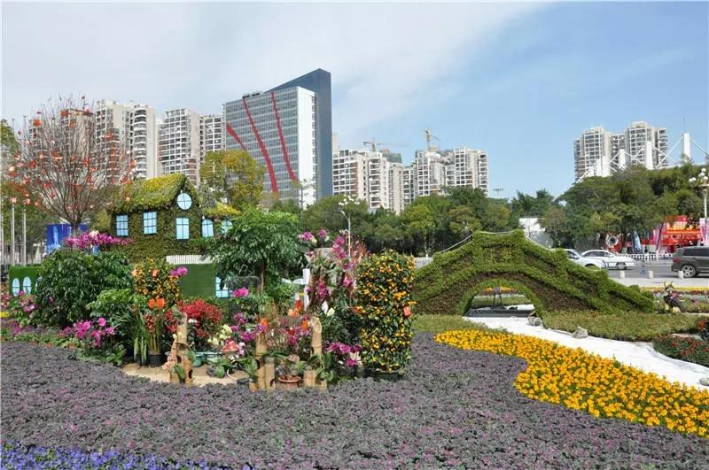 花壇以壺公山為背景山,木蘭溪為型,體現(xiàn)“壺山蘭水”。以家為場景,小橋流水、草長鶯飛、春色滿園,代表人民生活品質(zhì)提高,幸福指數(shù)不斷提升,點(diǎn)出“美麗莆田、宜居港城”主題。