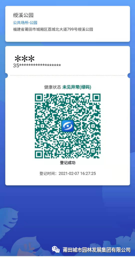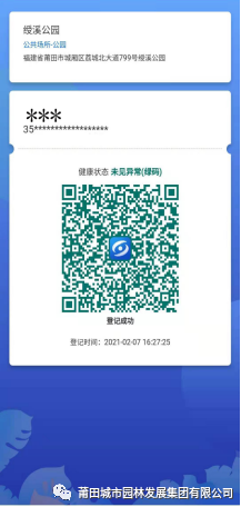 4.顯示“登記成功”。 三、入園后,請(qǐng)游客自覺(jué)做好防范措施,不聚集、不扎堆、有序游玩、保持1米以上安全距離。 四、若有異常情況,請(qǐng)配合工作人員轉(zhuǎn)移,并登記個(gè)人信息,按規(guī)定流程處置。 五、游客接待量超過(guò)公園最大承載量的75%時(shí),公園將實(shí)行限流管控,請(qǐng)自覺(jué)排隊(duì)等候。 六、若您有困難,請(qǐng)持智能手機(jī)前往公園入口處,工作人員、志愿者將給予幫助,方便順利入園。 七、園區(qū)游客較多,公園綠道自行車(chē)限行,造成不便,敬請(qǐng)諒解。