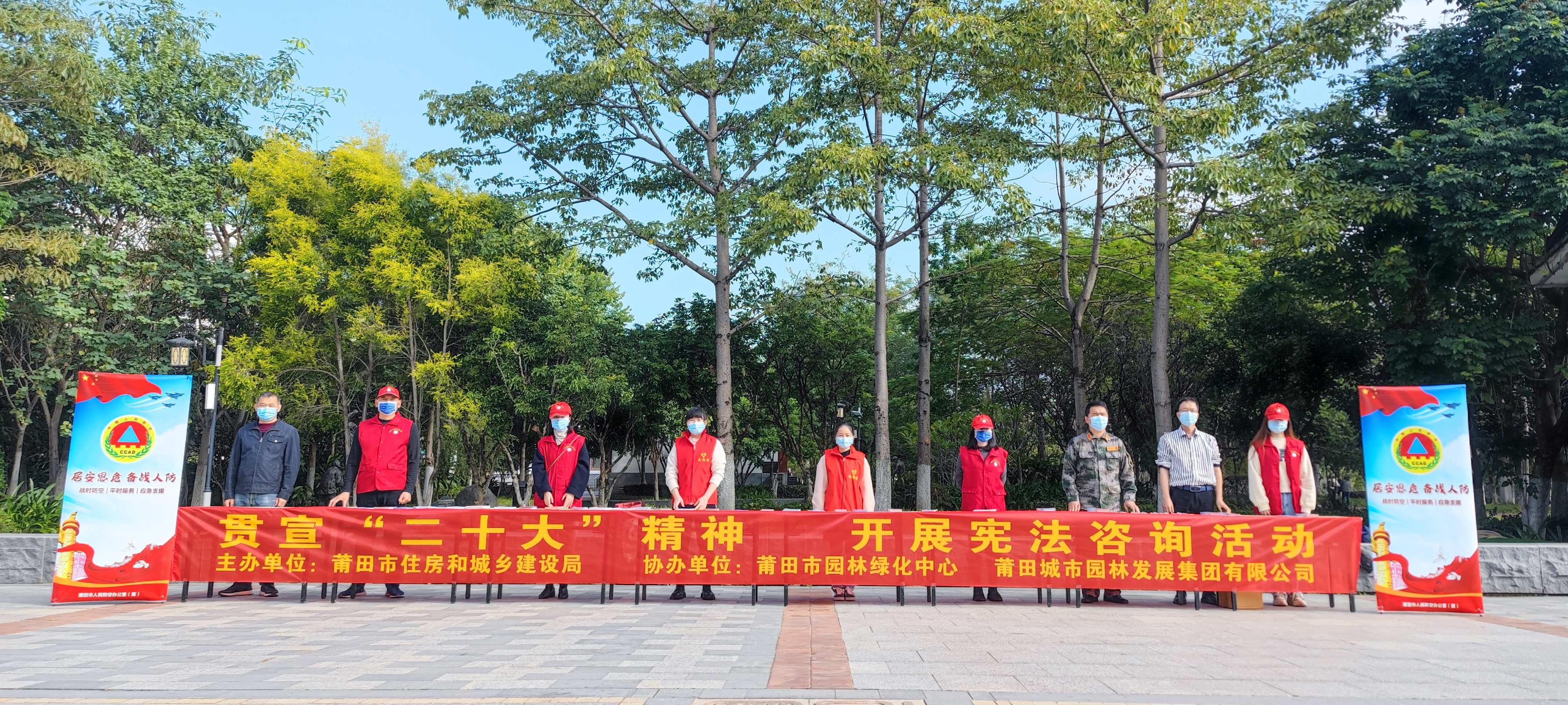 2022年12月8日,莆田城市園林發(fā)展集團(tuán)有限公司組織志愿者在綬溪公園廣場(chǎng)開展主題為“貫宣‘二十大’精神,開展憲法咨詢活動(dòng)”普法宣傳活動(dòng)。