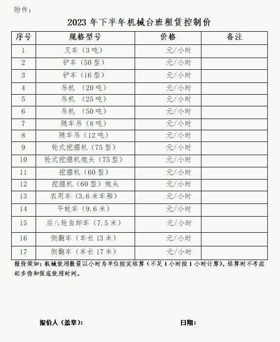 莆田城市園林發(fā)展集團有限公司關(guān)于2023年下半年機械臺班租賃控制價征集公告